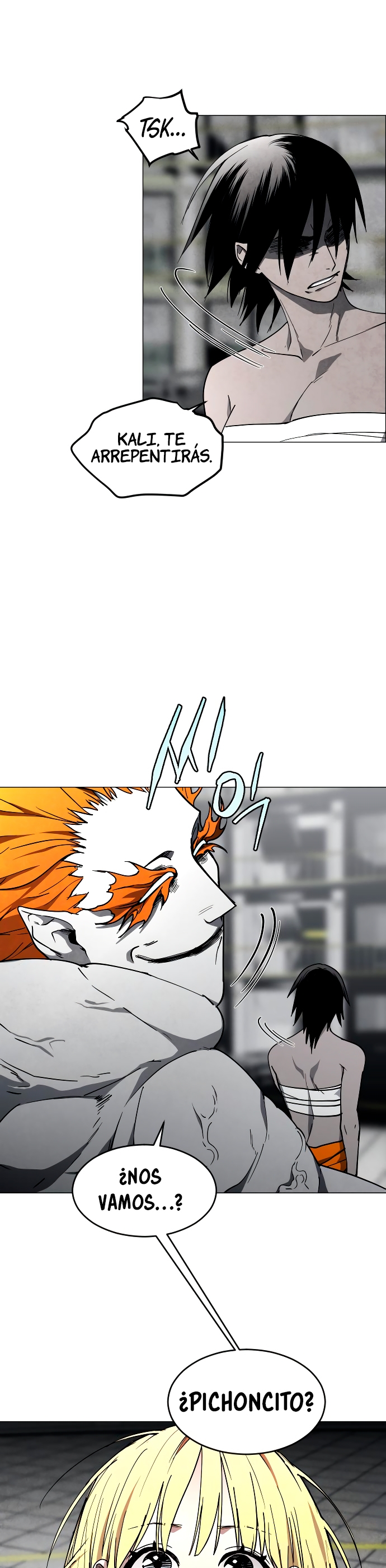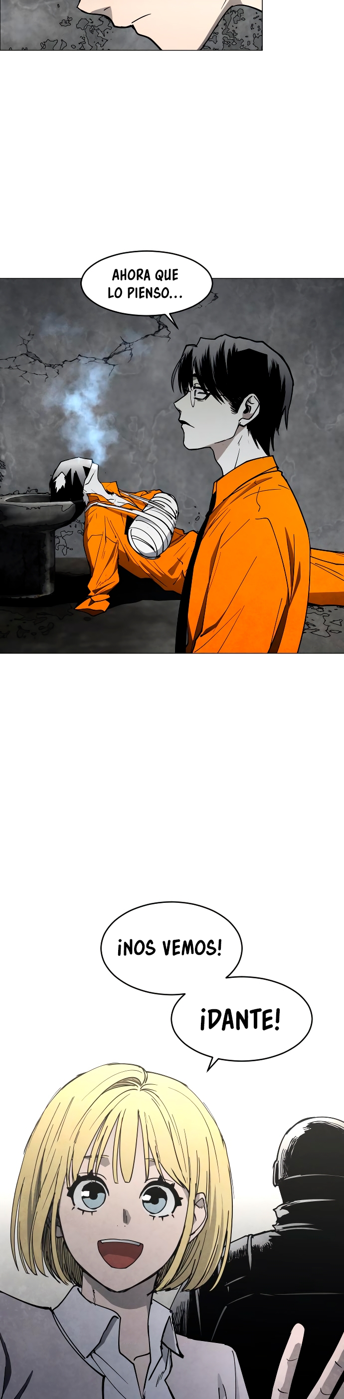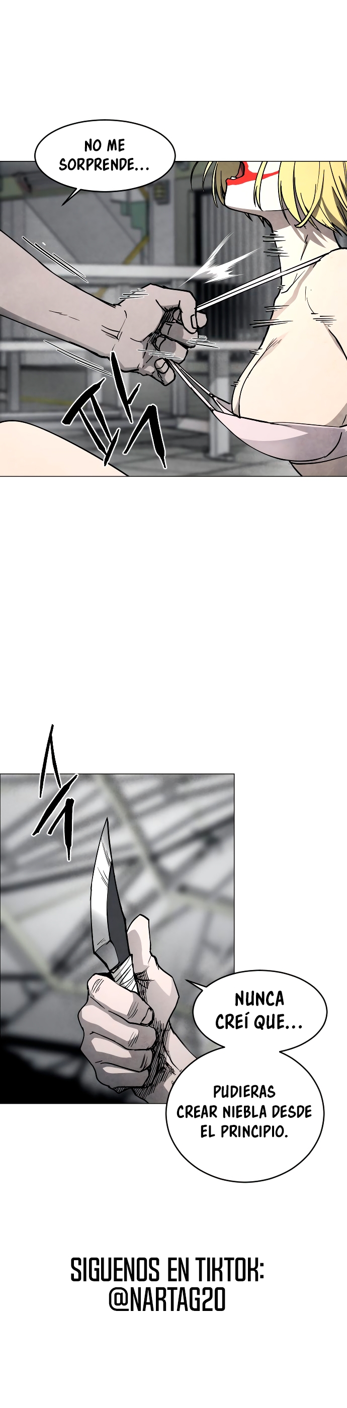 Que horror pobre mujer,lo peor que ella no sabe la información que sabe dante como para que pueda hacer niebla líquido,no sabe nada de como apareció o etc.Se va a morir seguro si no la ayudan dante y 182.( ´Д`)ノ